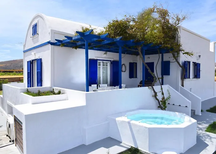 Santorini (Thira) flygplats ligger inom 15 minuters bilresa och Röda stranden finns cirka 6 km bort. Det antika Thera ligger cirka 25 minuter bort till fots. Villan ligger inom 6 km från Koutsoyannopoulos vinmuseum.